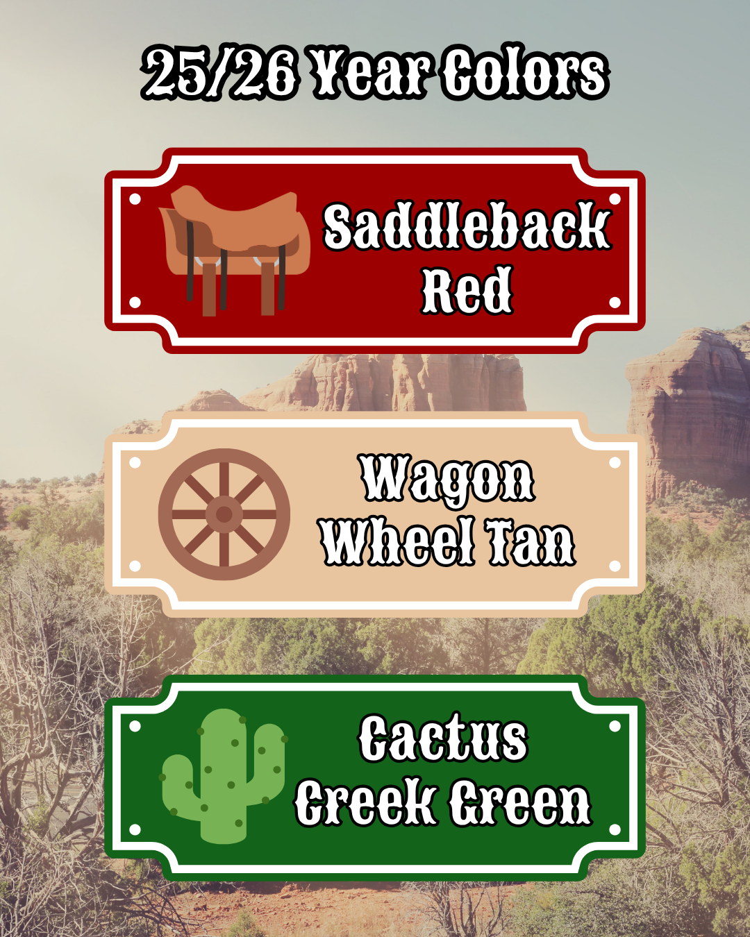2025-2026 ColorsSaddleback Red, Wagon Wheel Tan, and Cactus Creek Green